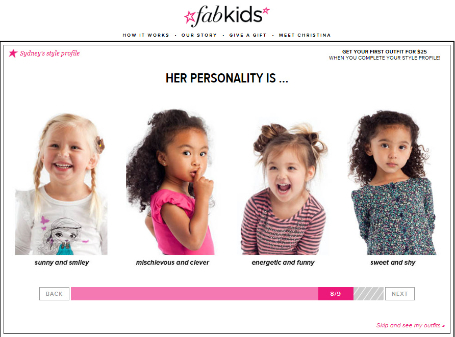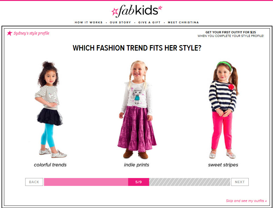 - You fill out your daughter’s style profile where you are asked fun questions about her and her style.