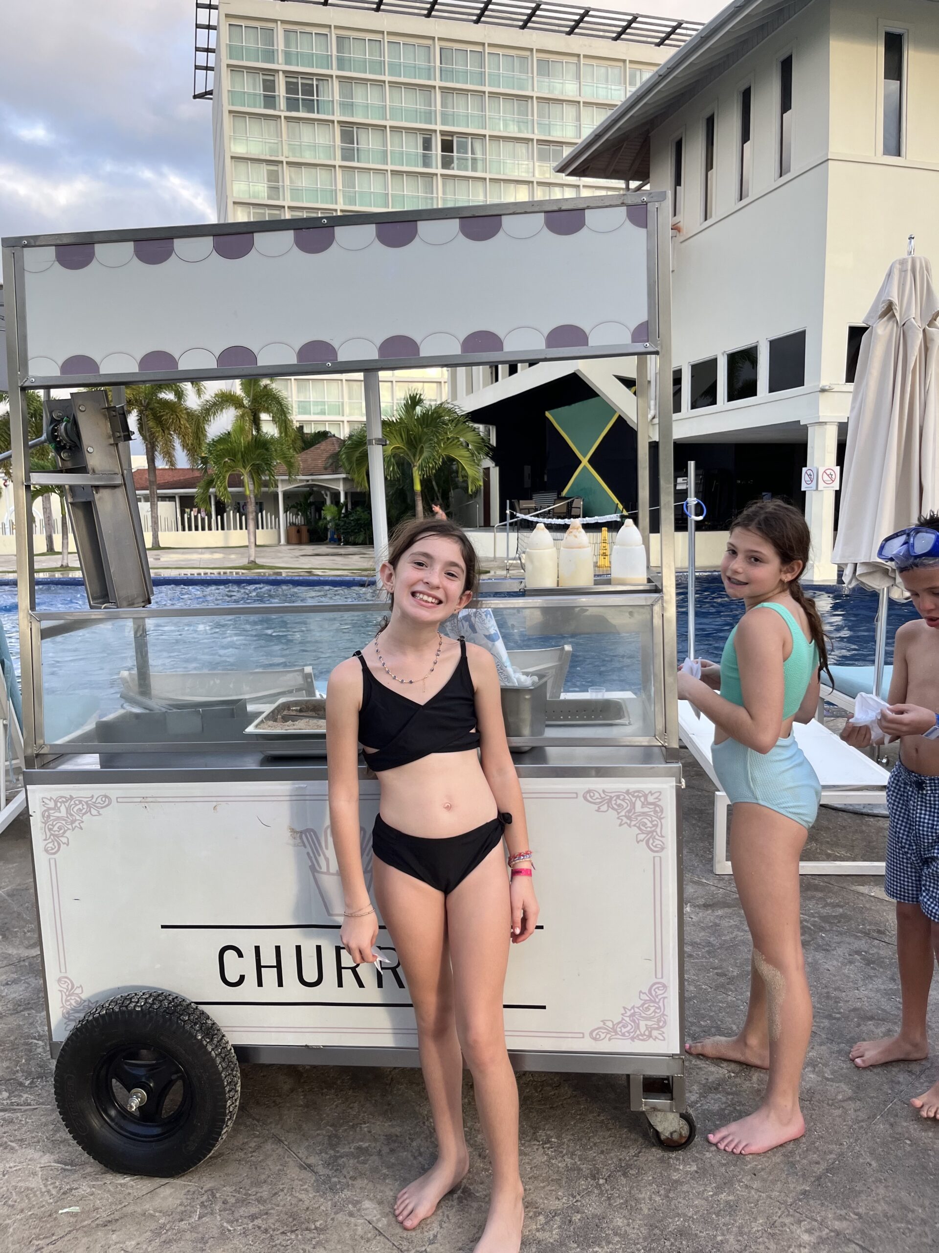 But the eating doesn’t end there! The churro cart by the pool was another treat, and they even made gluten-free churros upon request. After dinner, we all would visit the coffee shop in the lobby for crepes, ice cream and coffee that we took with us to enjoy while watching the evening entertainment!