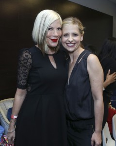 LOS ANGELES, CA – DECEMBER 06: Tori Spelling and Sarah Michelle Gellar attend the 4th Annual Santa’s Secret Workshop Benefiting LA Family Housing at Andaz Hotel on December 6, 2014 in Los Angeles, California. (Photo by Tiffany Rose/WireImage)