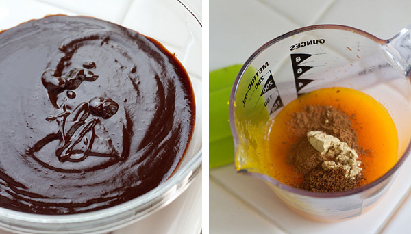 2. Whisk together the canned pumpkin, cinnamon, ginger, and nutmeg in a small bowl, then whisk this mixture into the chocolate ganache. Pour the pumpkin ganache into a shallow bowl, cover, and refrigerate for at least 4 hours (or overnight).