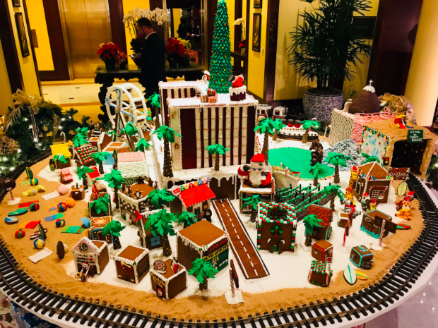 Santa’s So Cal Gingerbread Village displays the holiday season in complete L.A. style. As you’d expect, it features the beach! Four Season’s pastry team worked for months to create this breathtaking centerpiece. These gingerbread houses are not just for the eye. Every piece of this masterpiece is handmade and completely edible. Although I wouldn’t recommend having a taste, it’s good to know this is the real thing!