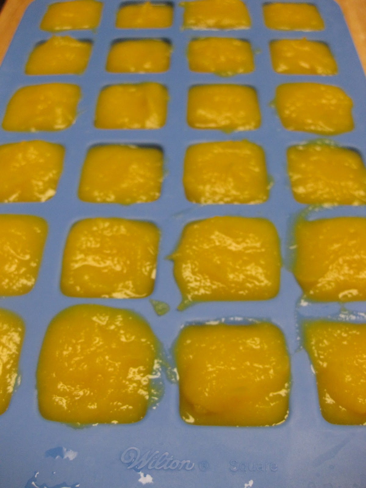 After filling the pans & freezing (it only took mine a couple of hours to be solid), just pop them out and place into baggies or other containers!