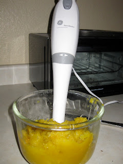 To puree, use a blender. (In the early stages of baby food eating, I add a little water to make the texture smoother).