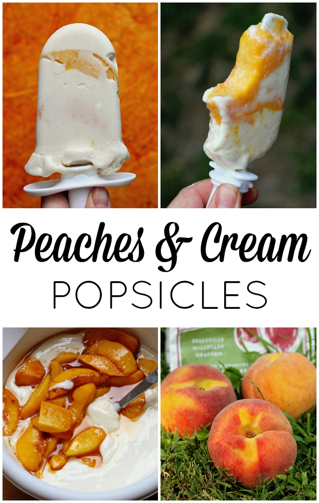 While everyone’s focused on getting the kids back-to-school right now, it’s still officially summer for a few more weeks and we’re taking full advantage of the hot days and warm nights. This time of year is also the peak of peach season, one of my all-time favorite fruits. If you’re lucky enough to live in one of the 24 states that grow peaches in the U.S., try to take advantage of a pick-your-own farm to ensure you get the freshest, ripest peaches around. Otherwise, farmer’s markets and grocery stores in every state should all be boasting big delicious peaches this time of year. And what better way to enjoy peaches in these final days of summer than with peaches and cream popsicles?